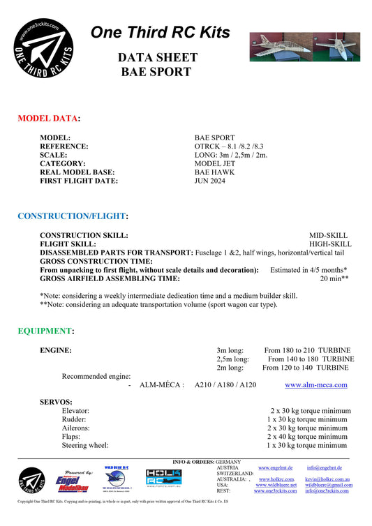 Ponte en contacto con nosotros en info@one3rckits.com y dinos el tamaño o el modelo que prefieres (SPORT / HAWK).